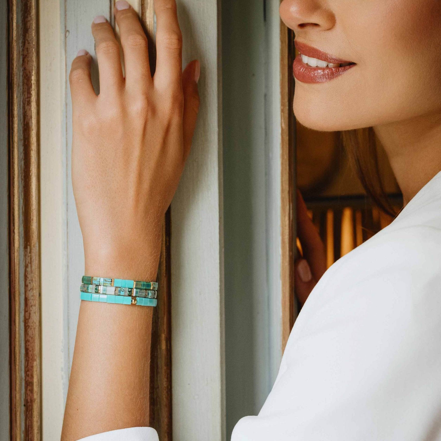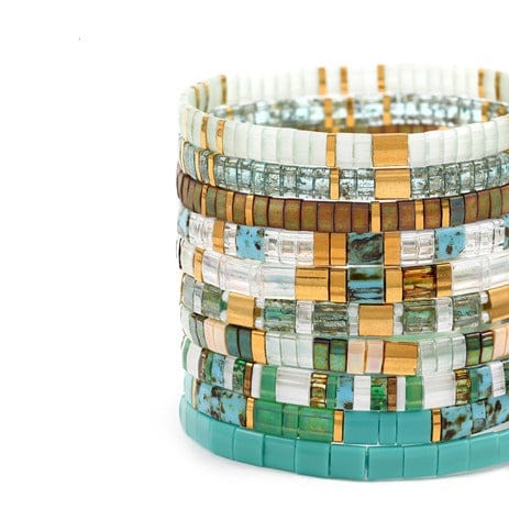 Cada pieza está elaborada a mano con auténticas piedras japonesas Miyuki, reconocidas por su brillo sutil y su calidad incomparable.